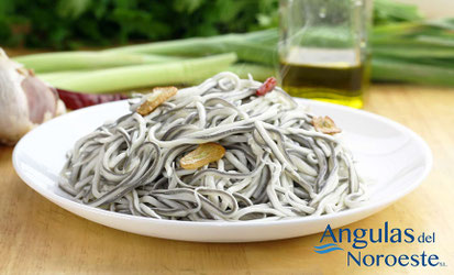 Carne de pescado blanco, agua, almidón de patata, albúmina de huevo, potenciador del sabor E-621, estabilizantes E-407, E-410, E-415, sal, aceite de tinta de cefalópodo y aroma de angula.